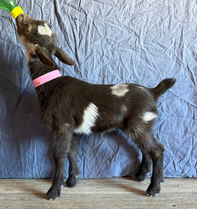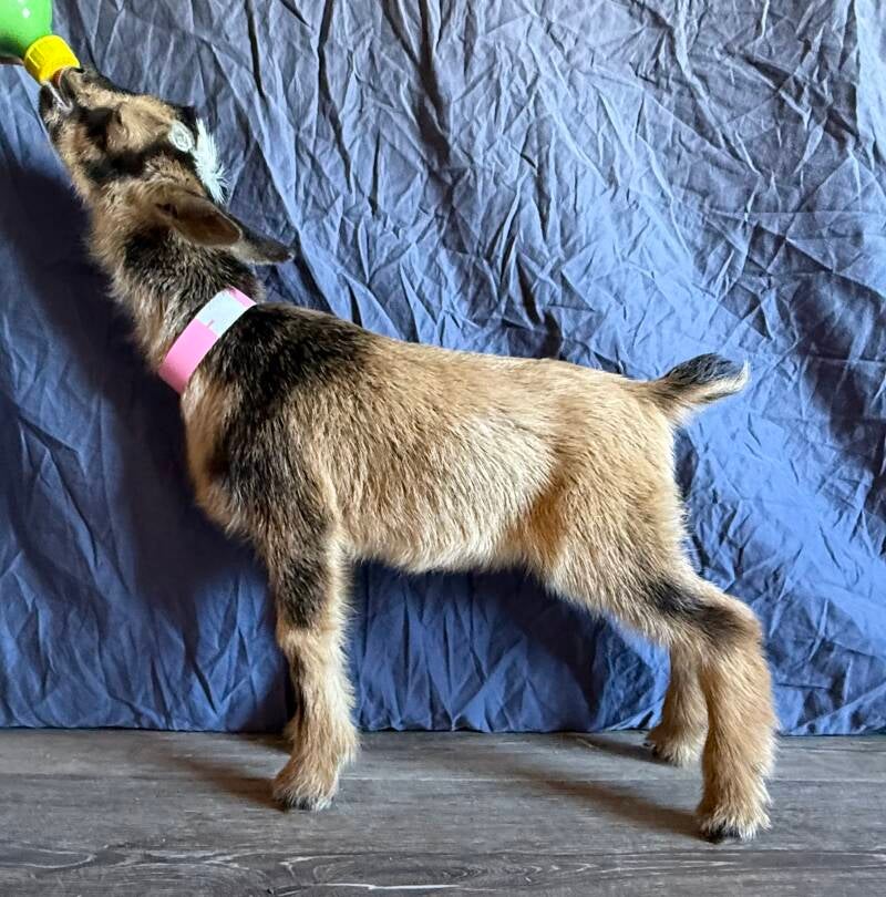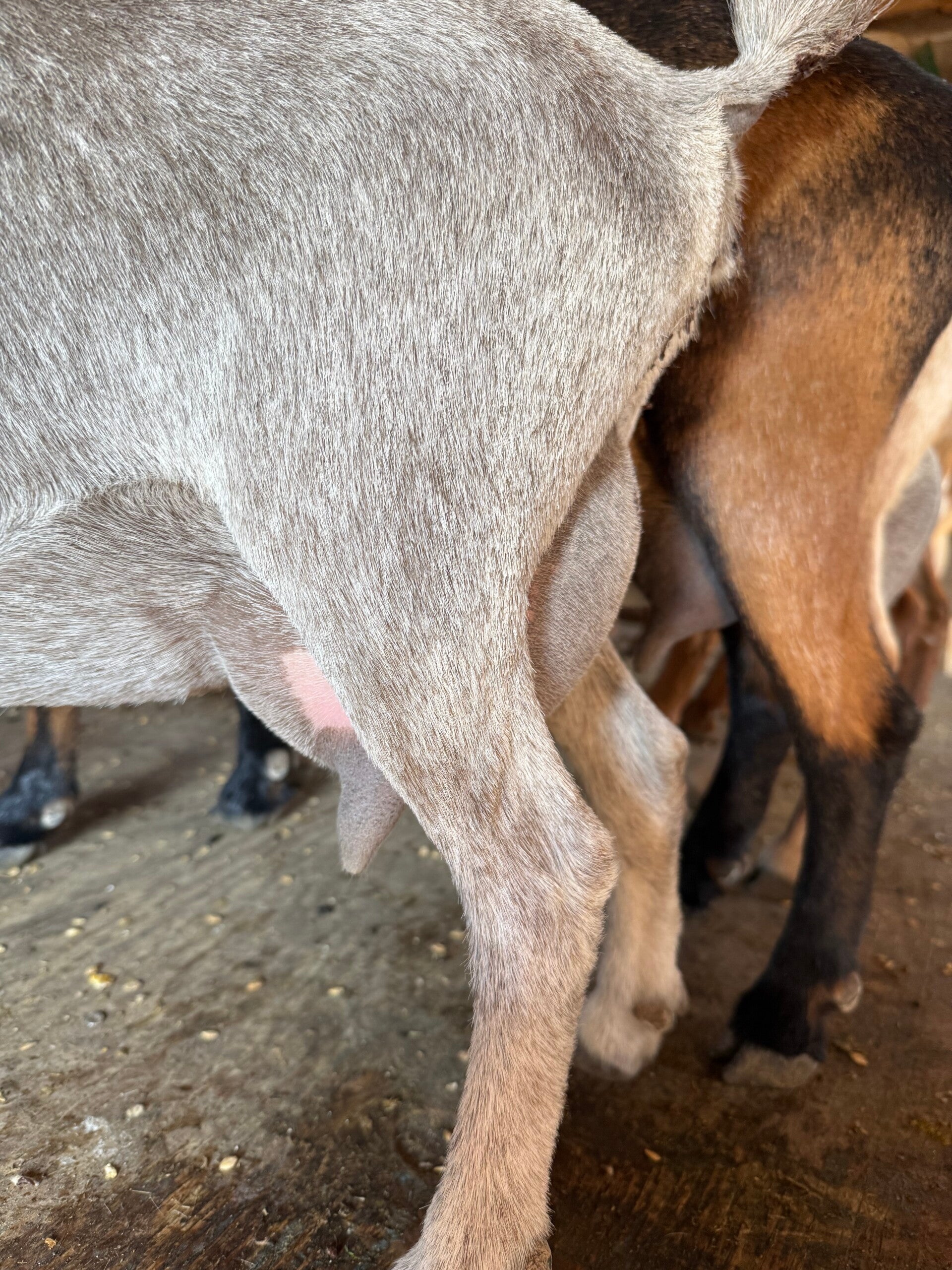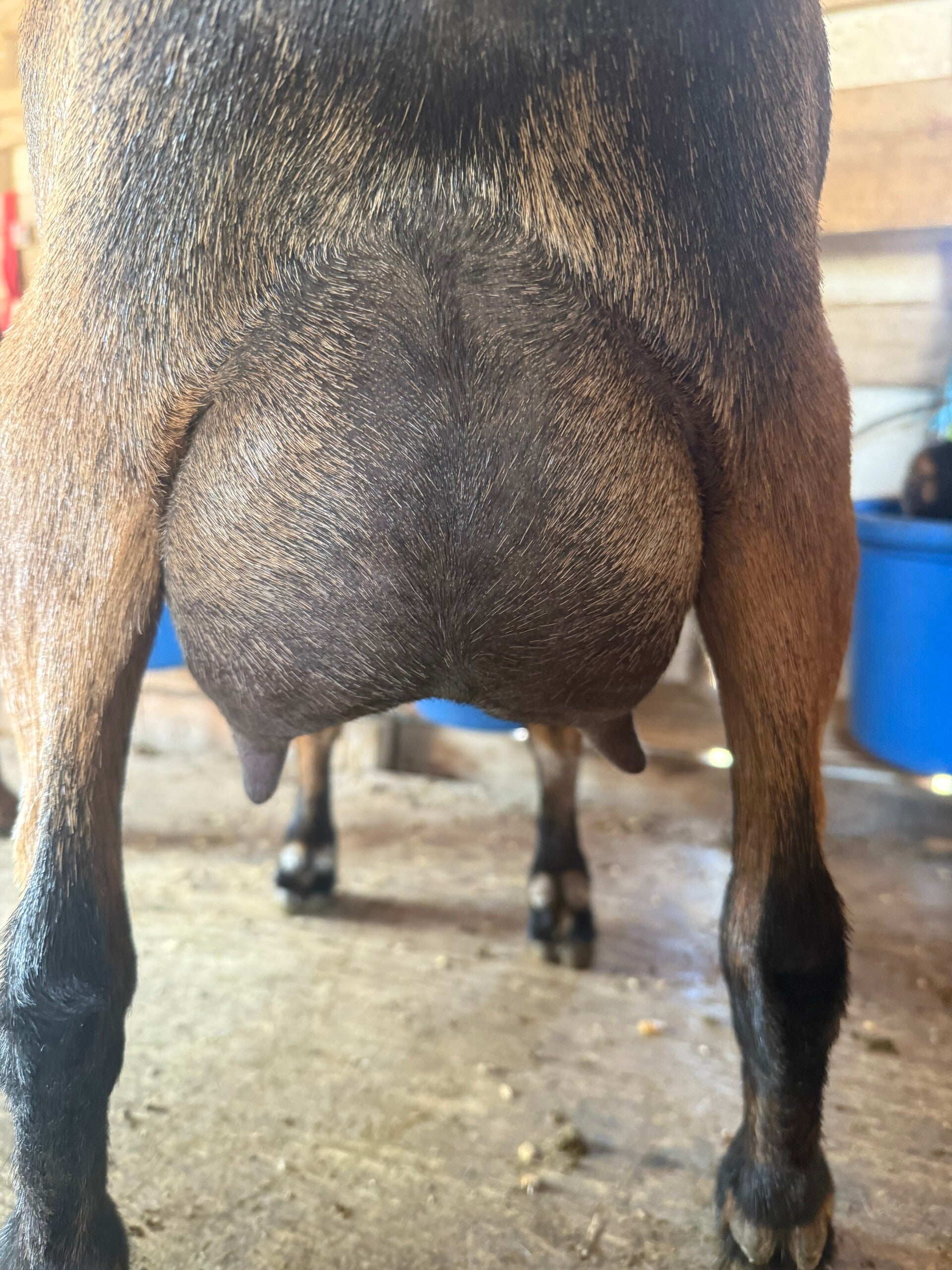 Punch is an awesome little doe with some great Springwater genetics on top and out of the one and only Lavendar. The udders backing this girl up are second to none. She was milked all spring and summer last year and knows the routine. She just freshened in early march 2026 and is currently being milked twice a day. We don’t have any really good fill photos of her but trust me when I say you wont be disappointed, above pictures is her newly fresh udder. We will update pictures in a few weeks when it is warm enough to shave everyone up bettter. Punch is an easy keeper so no issues with being to thin for this girl.